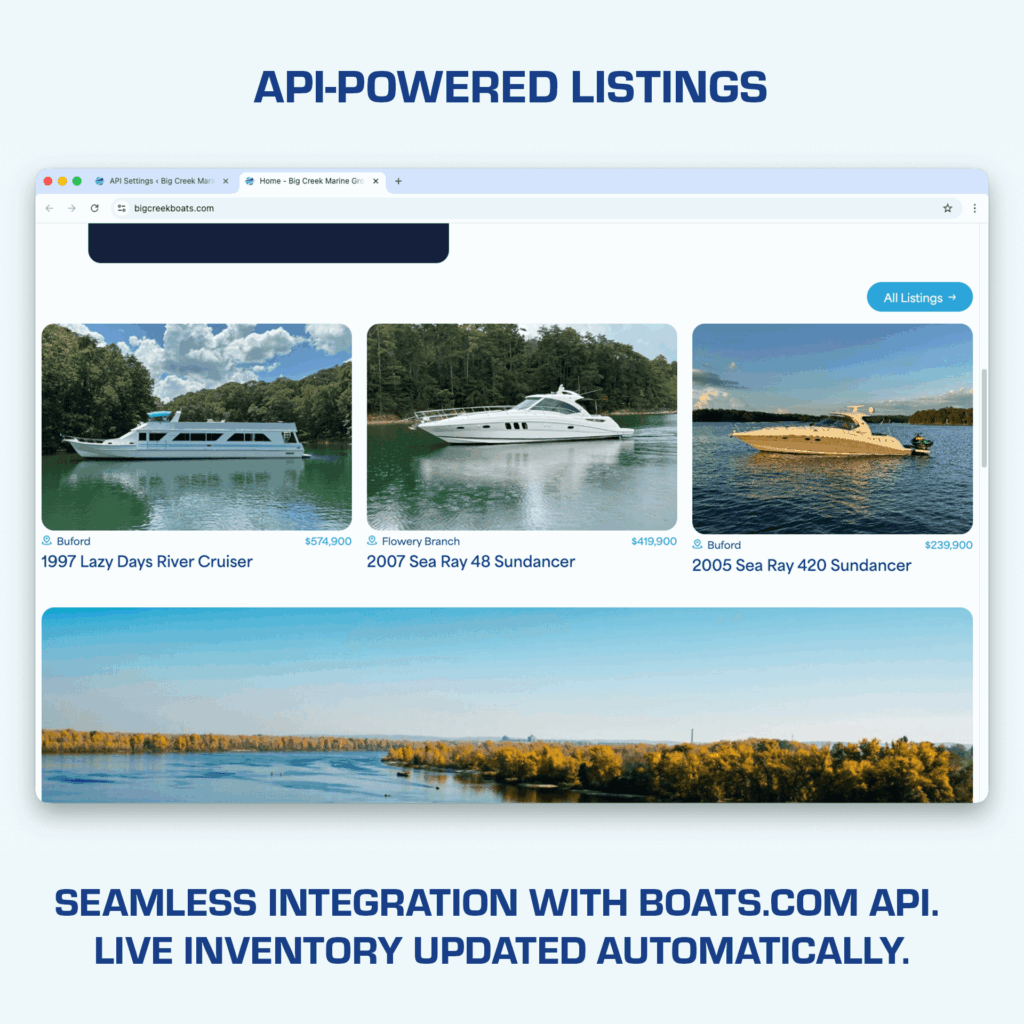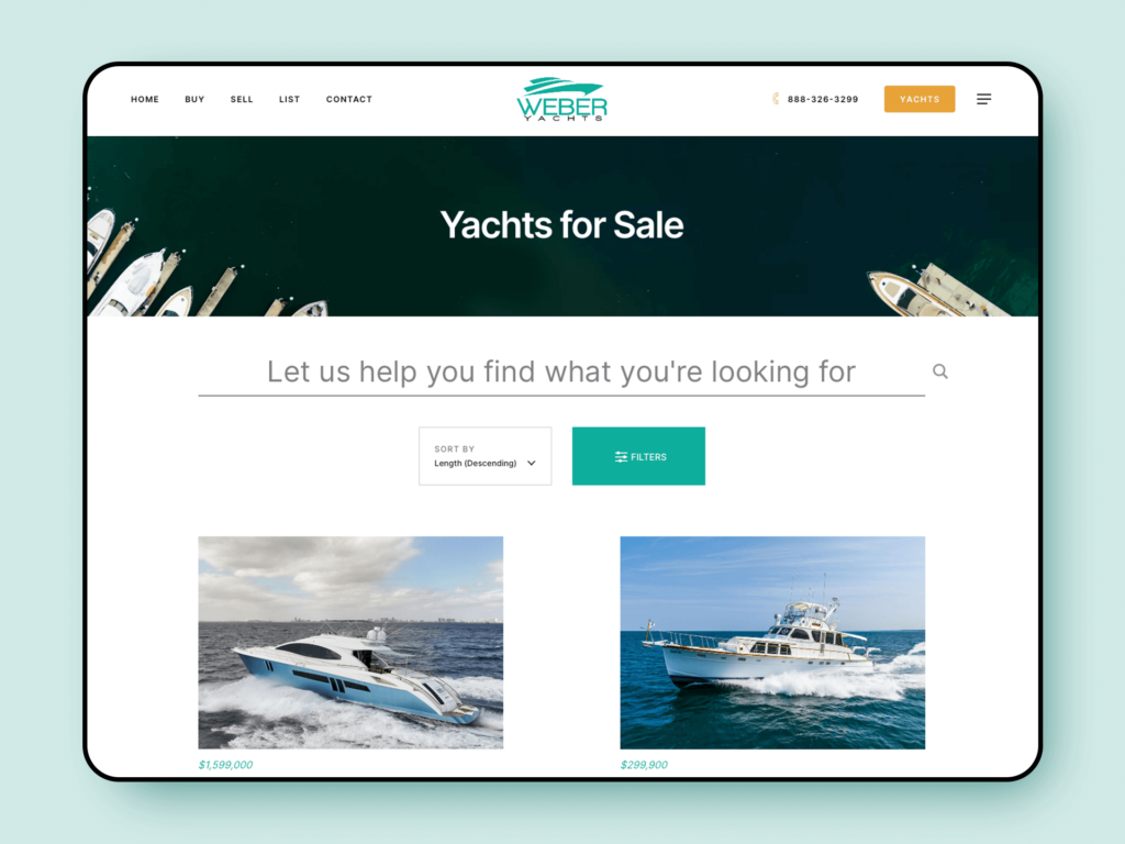 A fully custom WordPress theme built for a boat brokerage, engineered with deep API integration to pull live inventory directly into the site. The platform includes advanced search and sort functionality, performance-minded data handling, and analytics-driven features that help users find the right vessel quickly and reliably.