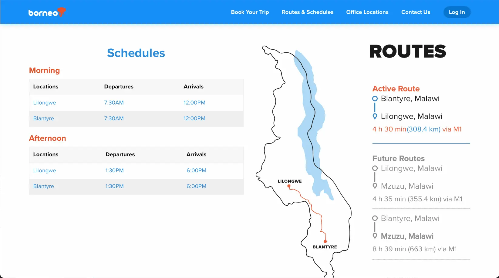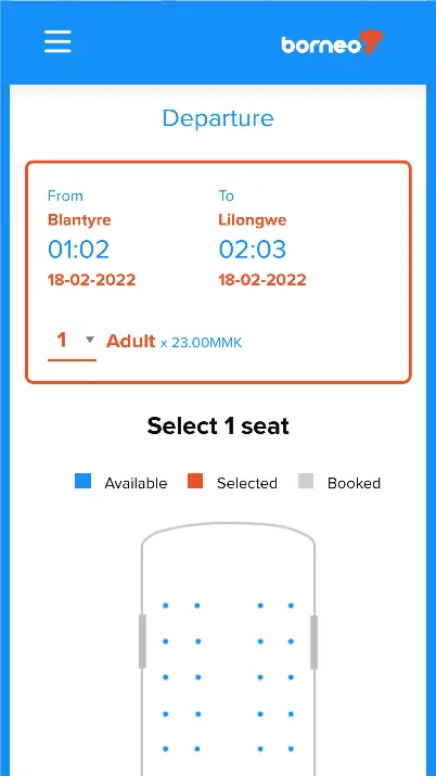 A custom web platform for a Malawi-based bus service, integrating a third-party PHP booking engine with full user account management. Features include real-time seat selection, ticket purchasing, trip history, receipt access, and a completely branded interface layered on top of the underlying booking system.